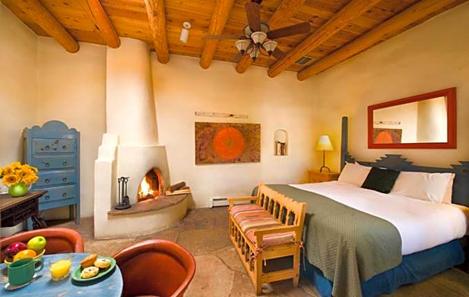 This studio features southwestern decor, a fireplace and a flat-screen cable TV. A small refrigerator, a microwave and coffee-making facilities are also featured. An private bathroom with bathrobes and slippers is provided.